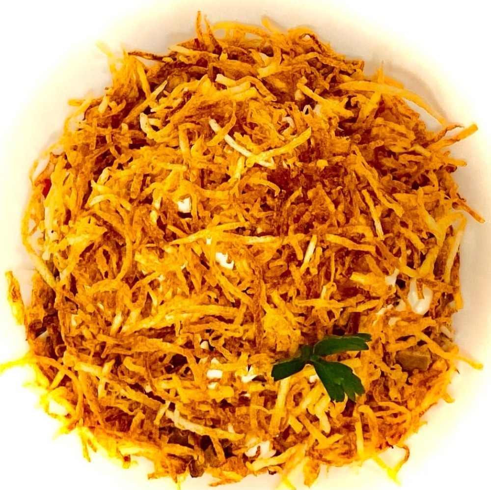 Перец болгарский, огурцы соленые, лук белый, говядина, майонез картофель пай.