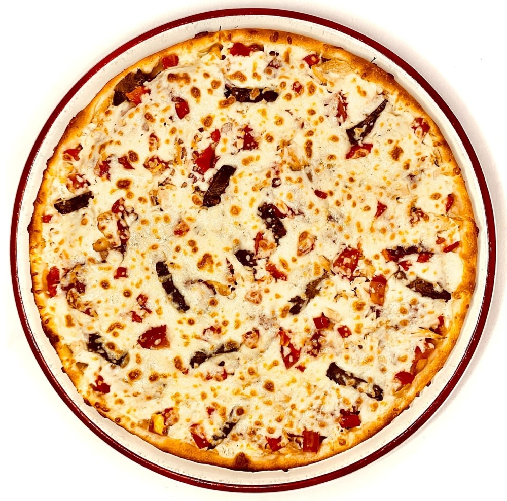 Салями, бекон, говядина, куриное филе, томаты, перец, сыр моцарелла, соус гарри