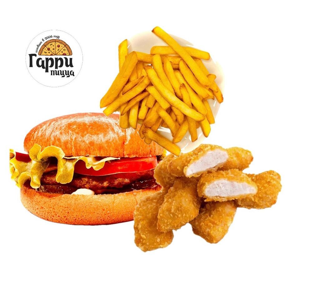 Мама бургер, наггетсы, фри